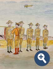 Frank Gurrier received his pilots’ training at Kelly Field, Texas in 1917 and served with the 349th Aero Squadron in England during World War I. Gurrier showcased his artistic side by depicting crashes and other events with small drawings and pencil etchings, in addition to collecting articles and pictures that documented flight history beginning in 1903.