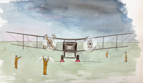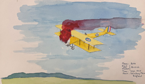 Frank Gurrier served with the 349th Aero Squadron during World War I. Gurrier received his pilots’ training at Kelly Field, Texas in 1917. During this time, Gurrier trained in the Curtis JN-4 (Jenny). After training at Kelly Field, Gurrier and the rest of the 349th deployed to England to support the allies in the war. During training and deployment, Gurrier showcased his artistic side by depicting crashes and other events with small drawings and pencil etchings. Gurrier witnessed and endured multiple crashes during his training and deployment, but returned safely to the United States at the end of World War I. During his time with the Army Air Service and after the War, Gurrier became fascinated with the history of aviation and began collecting articles and pictures that documented flight history beginning in 1903.